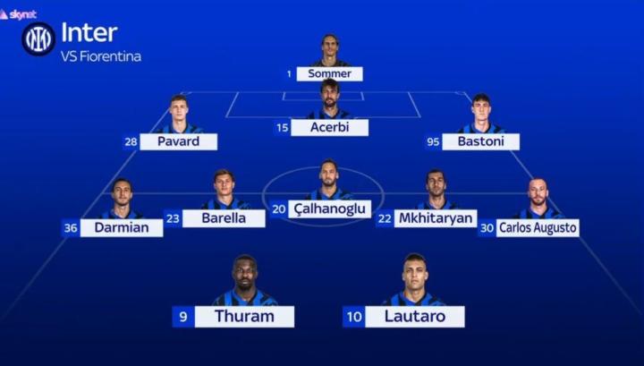 国米的首发名单包括了索默、帕瓦尔、阿切尔比、巴斯托尼、达米安、巴雷拉、恰尔汗奥卢、姆希塔良、卡洛斯-奥古斯托、马库斯-图拉姆和劳塔罗。这个阵容显示出国米在此战中的决心和实力,他们将全力以赴争取一场胜利。